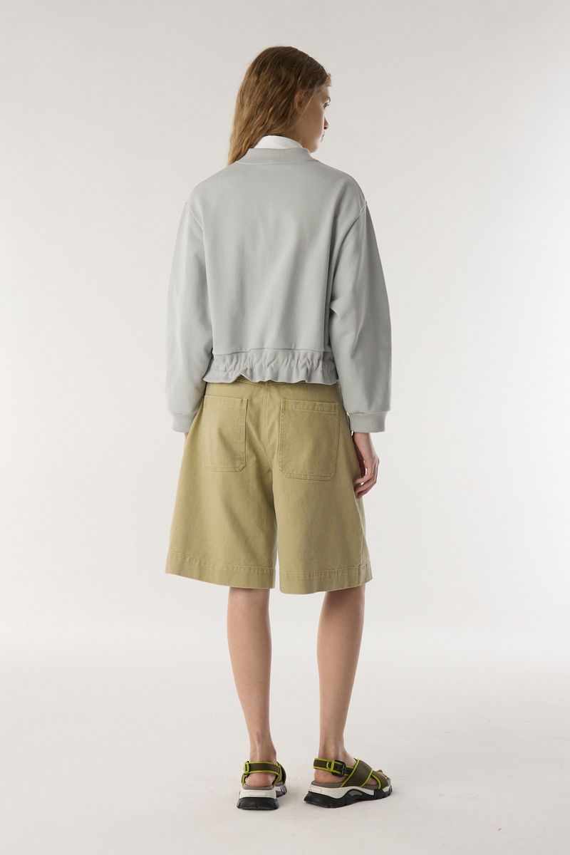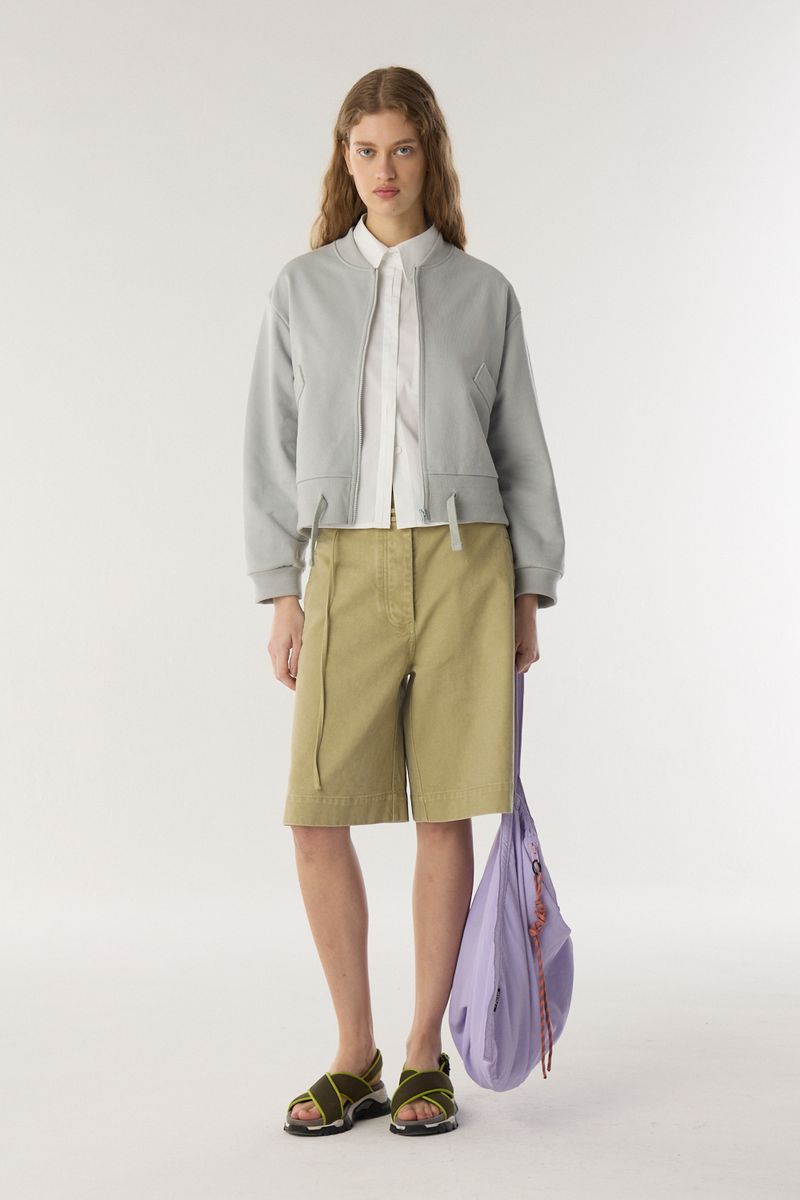 Campera de rustico de algodón con bolsillos. El acceso es mediante cierre a tono en el frente. Tiene detalle de jareta y tiras de ajuste en cintura. Con calce regular y largo hasta la cadera. / Altura modelo: 1,79 m Talle: S / Composición: 100% algodon / Origen: Nacional