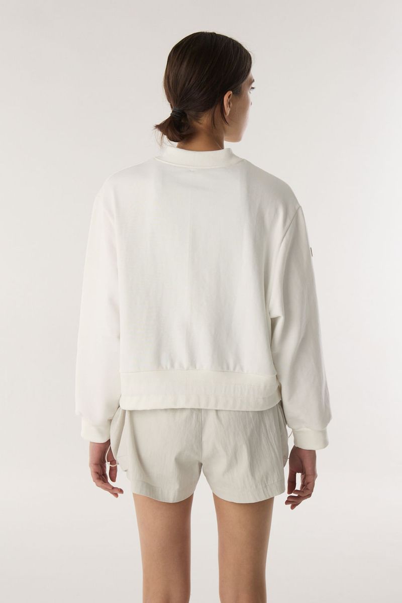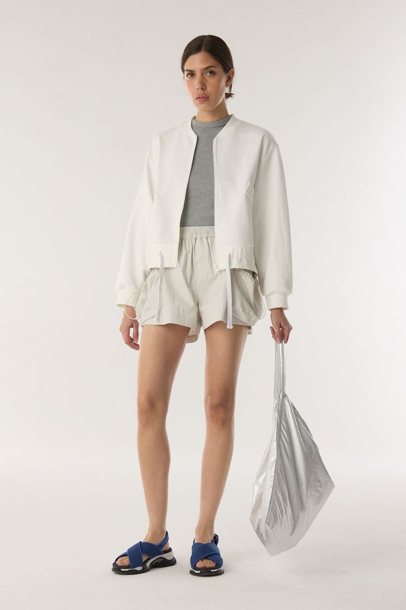 Campera de rustico de algodón con bolsillos. El acceso es mediante cierre a tono en el frente. Tiene detalle de jareta y tiras de ajuste en cintura. Con calce regular y largo hasta la cadera. / Altura modelo: 1,77 m Talle: S / Composición: 100% algodon / Origen: Nacional