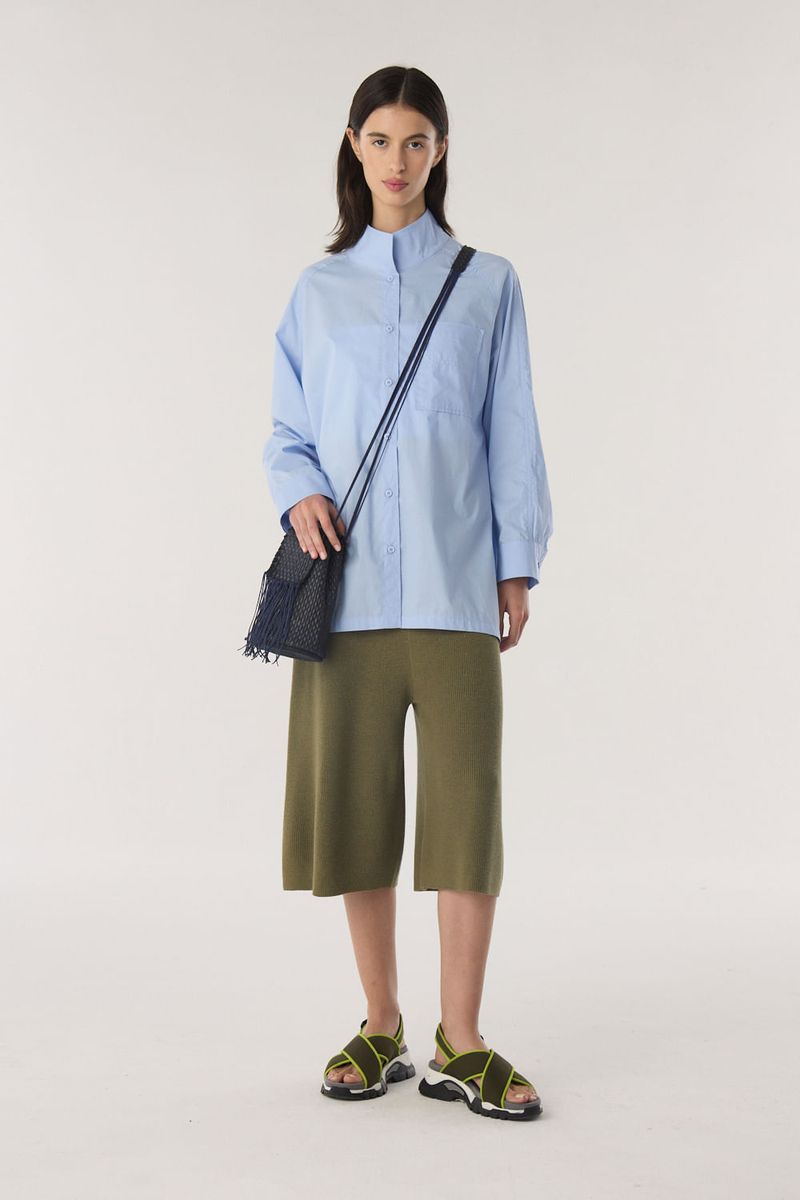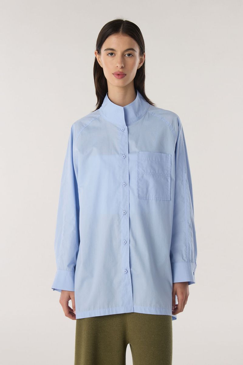 Camisa larga de algodón con cuello alto mao. El calce es amplio, con sisa amplia y mangas ranglan. Tiene bolsillo en delantero y es largo hasta la cadera. / Altura modelo: 1,77 m Talle: S/ Composición: 100% Algodón / Origen: Importado