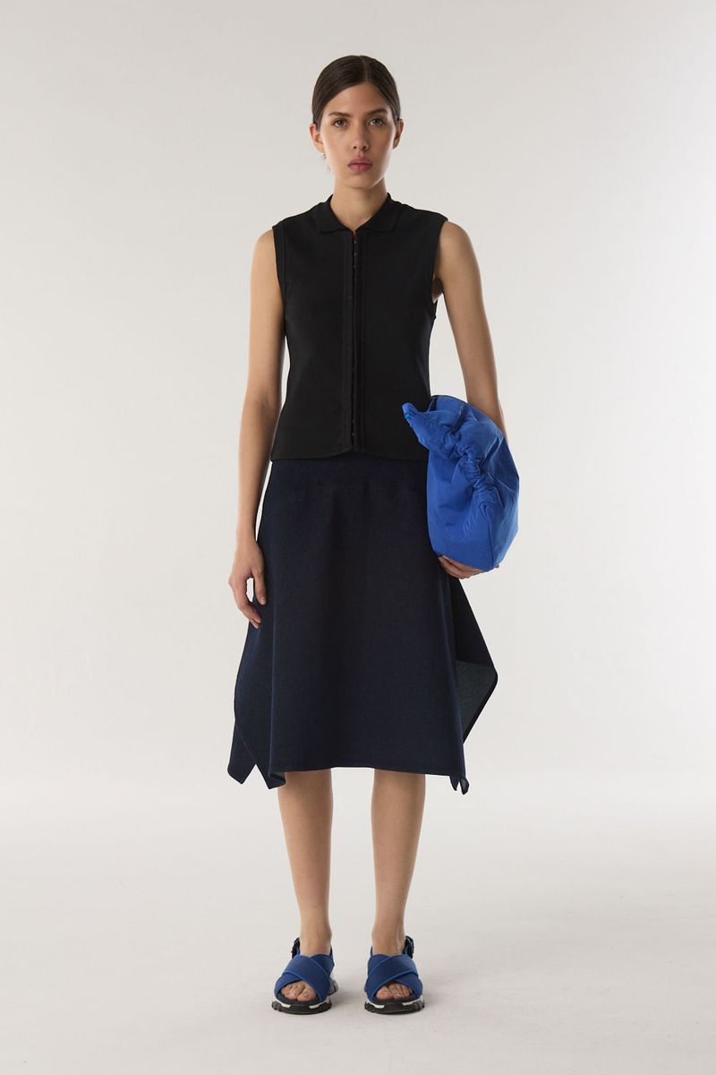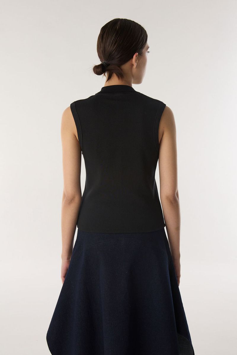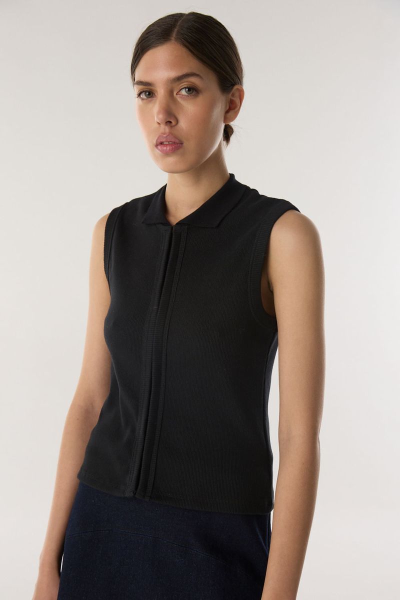 Camisa de tejido acanalado con broches corseteros en el delantero y cuello camisero. Calce al cuerpo y largo hasta la primer cadera. / Altura modelo: 1,77 m Talle: S / Composición: 100% algodon / Origen: Nacional
