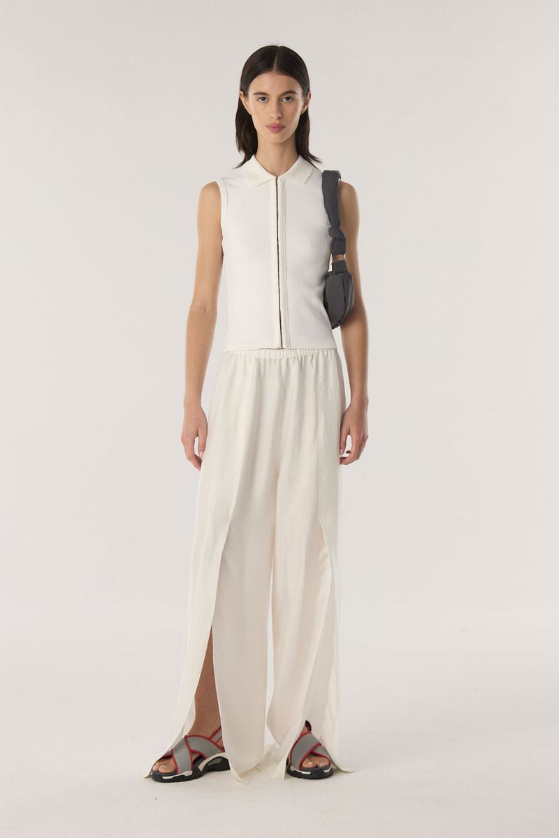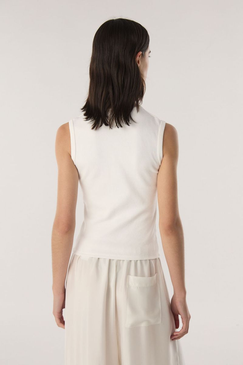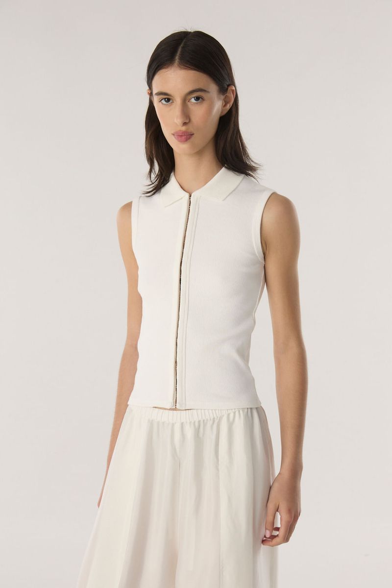 Camisa de tejido acanalado con broches corseteros en el delantero y cuello camisero. Calce al cuerpo y largo hasta la primer cadera. / Altura modelo: 1,77 m Talle: S / Composición: 100% algodon / Origen: Nacional