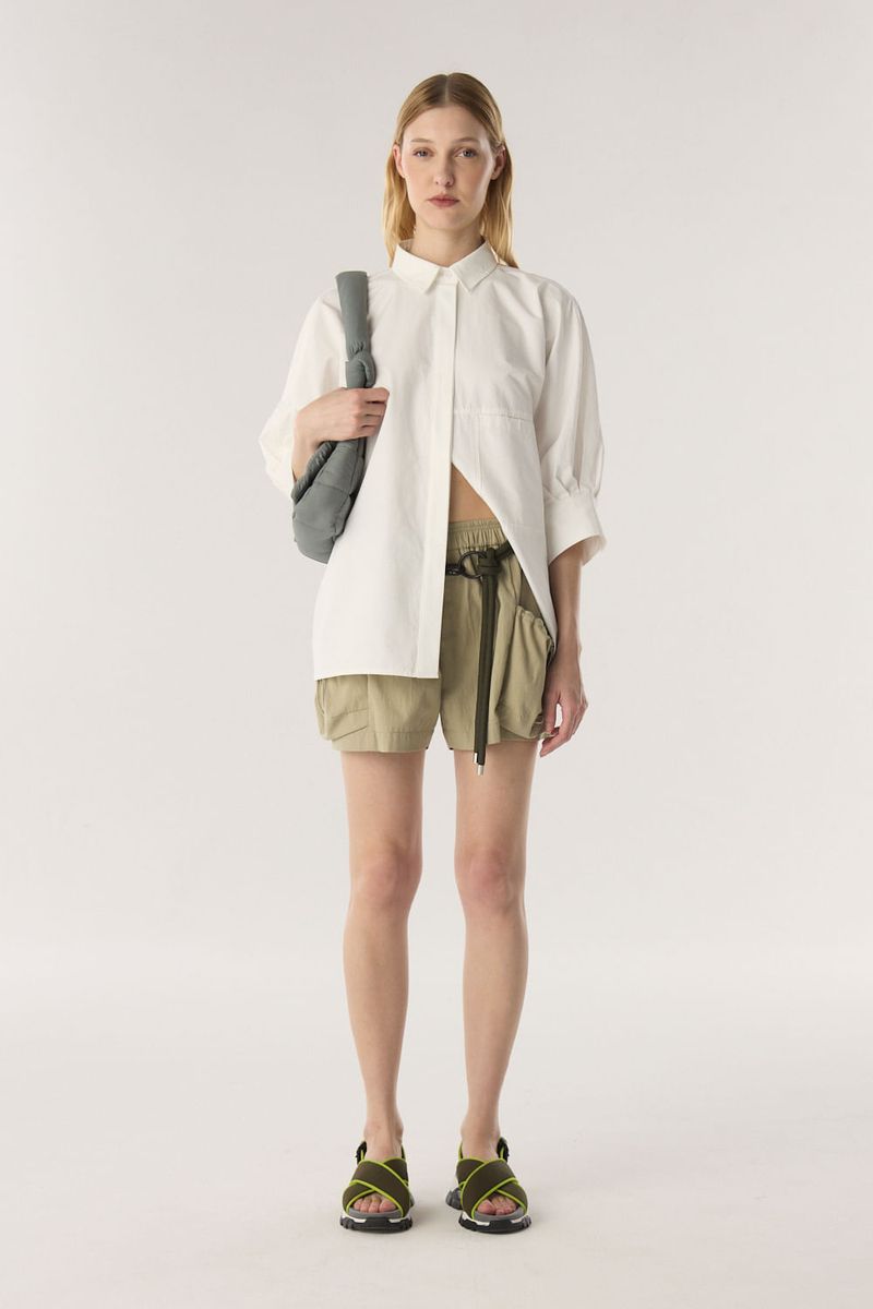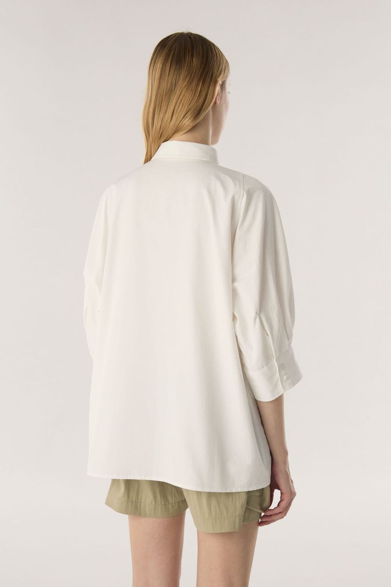 Camisa con mangas 3/4 y calce recto. Lleva cartera con botones escondidos y recorte con bolsillo en el frente. Detalle de botones grabados con logo de marca. / Altura modelo: 1.74 m / Talle: S / Composición: 55% algodón 45% poliamida / Origen: Importado