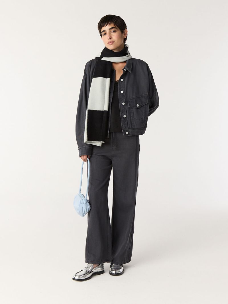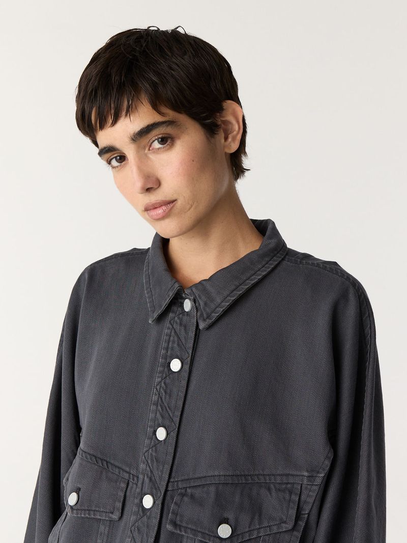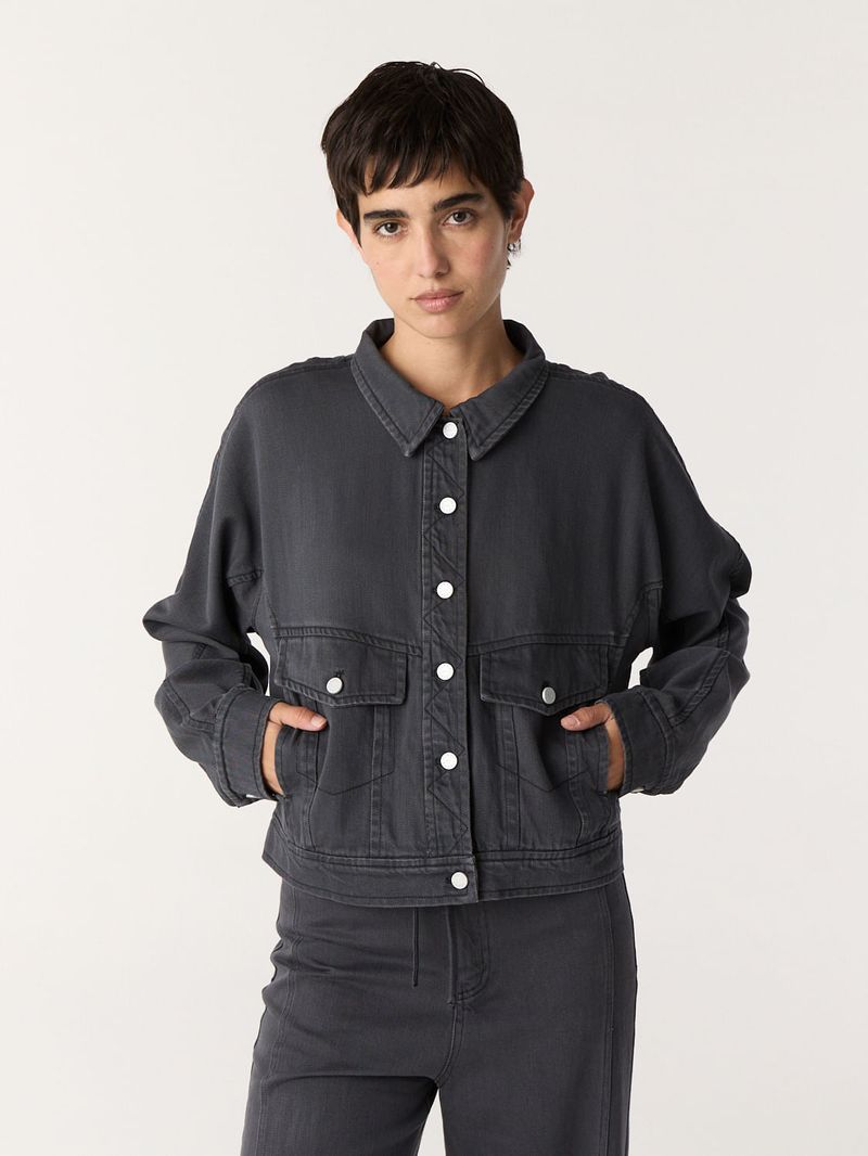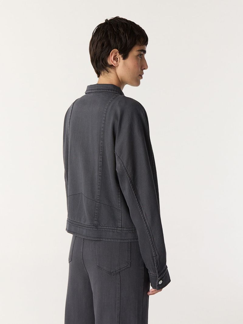 Chaqueta de gabardina con fit oversize. Es larga a la cadera, con recortes y bolsillos frontales. Acceso mediante cartera con botones metálicos en delantero. Combinalo con el Pantalon Recortes Gabardina. • Altura modelo:  Talle: S • Composición: 72% Algodon 28% Viscosa / Relleno 100% Poliester • Origen: Importado