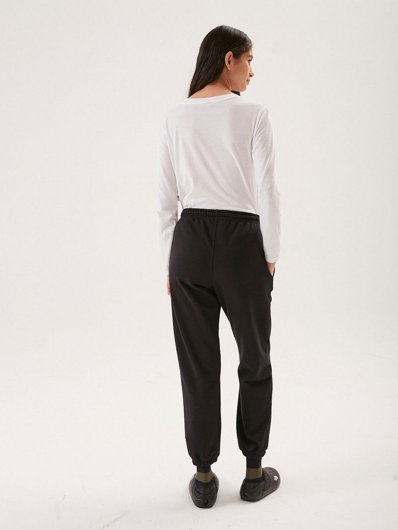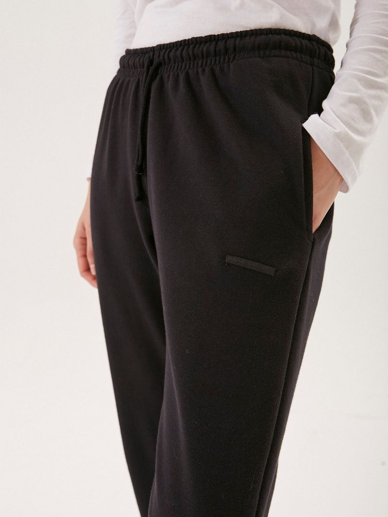 Jogging de rústico suave, con elástico y cordón en cintura y elástico en puños. El calce es amplio y relajado, tiene bolsillos laterales y un detalle de guión bordado a tono en delantero./ Composición: 68% Algodón 32% Poliéster/ Altura modelo: 1,78 m/ Talle:S / Origen: Nacional
