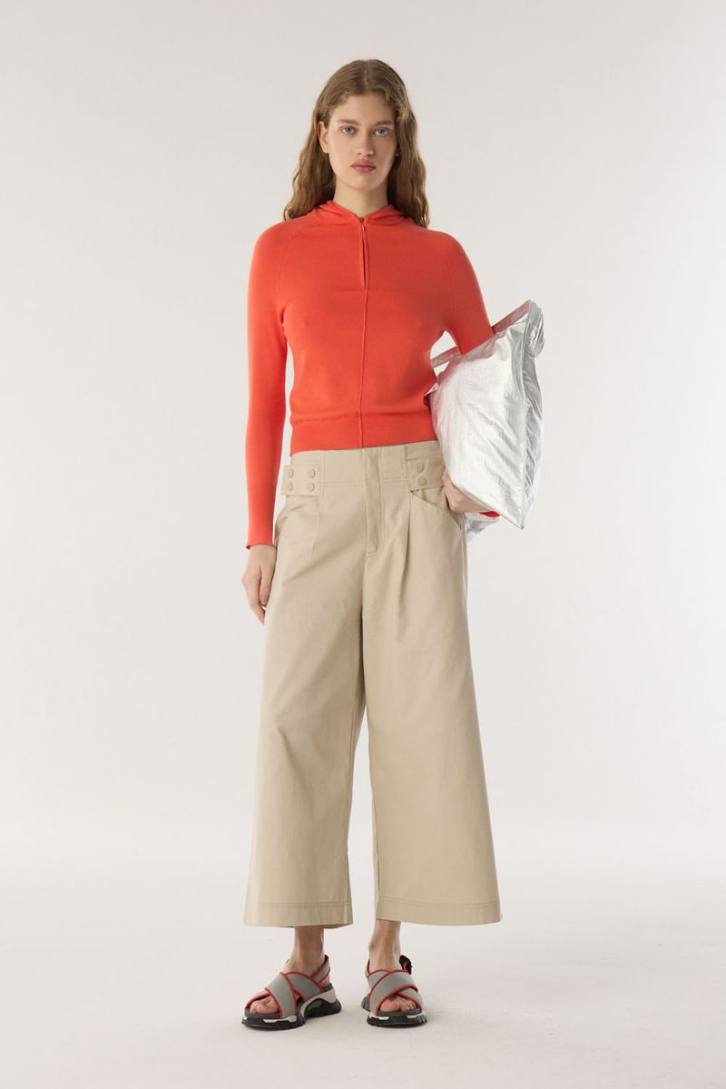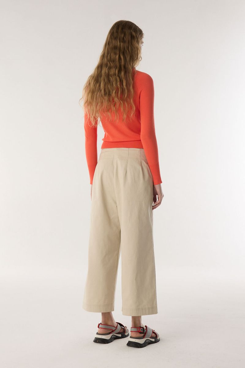 Pantalón de algodón liviano. Tiene cintura con cierre, boton y gancho ocultos, con bolsillos laterales. El calce es amplio y relajado, tiro alto, largo hasta el tobillo. Para un total look podes combinarlo con Cazadora Net. / Altura modelo: 1,74 m Talle: S / Composición: 100% Algodón / Origen: Importado