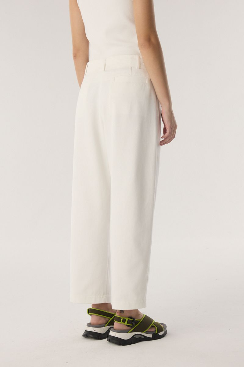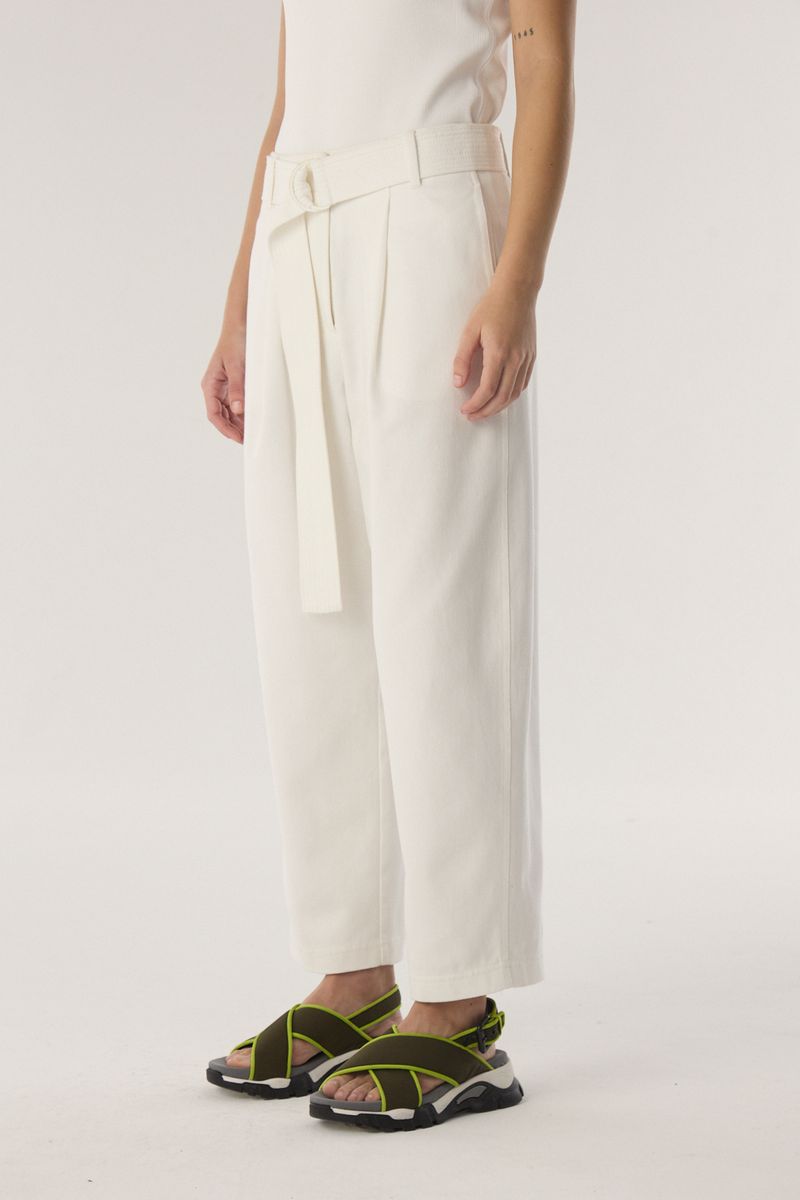 Pantalón sastrero con calce ancho y pinzas en el delantero. Lleva bolsillos laterales y detalle de cintura con tira para ajustar. Con bolsillos ojales en espalda y largo hasta los tobillos. Para un total look combinalo con la Chaqueta Twill Estructura. / Altura modelo: 1.74 m / Talle: S / Composición: 100% algodón - Forreria: 65% poliester, 35% algodón / Origen:Importado