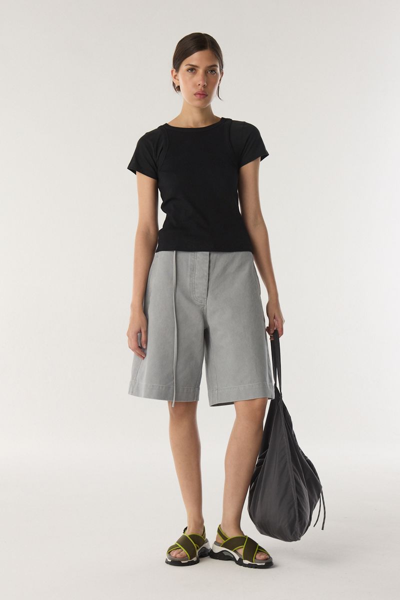 Remera básica de punto con escote redondo y efecto de superposicion de musculosa. Calce regular en hombros y sisa, manga corta de calce recto. Largo hasta la cadera. / Altura modelo: 1,77 m Talle: S / Composición: 97% algodón 3% elastano - 100% algodón / Origen: Nacional