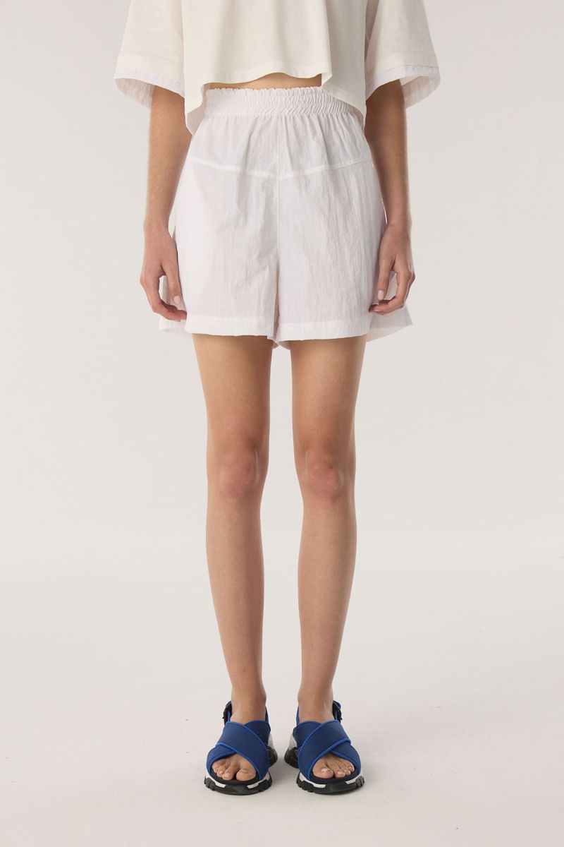 Short liviano y con caida. El calce es suelto, el tiro medio alto, con cintura fruncida con elástico interno. Tiene bolsillos laterales. /Altura modelo: 1, 77 m/ Composición: 100% poliamida / Origen: Nacional