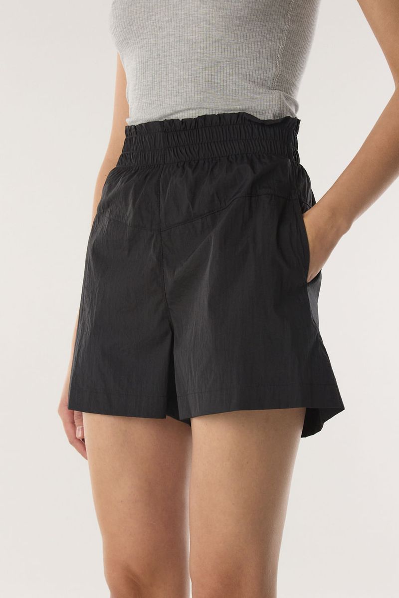 Short liviano y con caida. El calce es suelto, el tiro medio alto, con cintura fruncida con elástico interno. Tiene bolsillos laterales. /Altura modelo: 1, 77 m/ Composición: 100% poliamida / Origen: Nacional