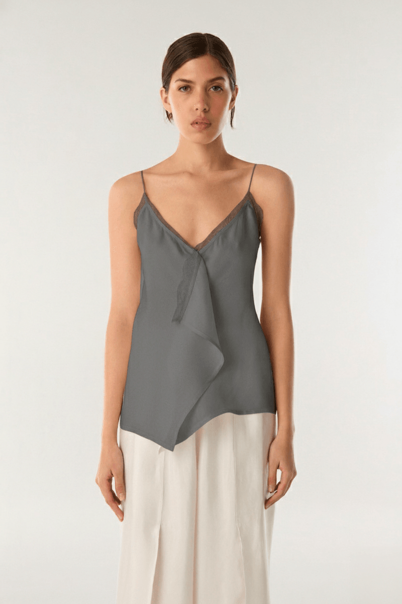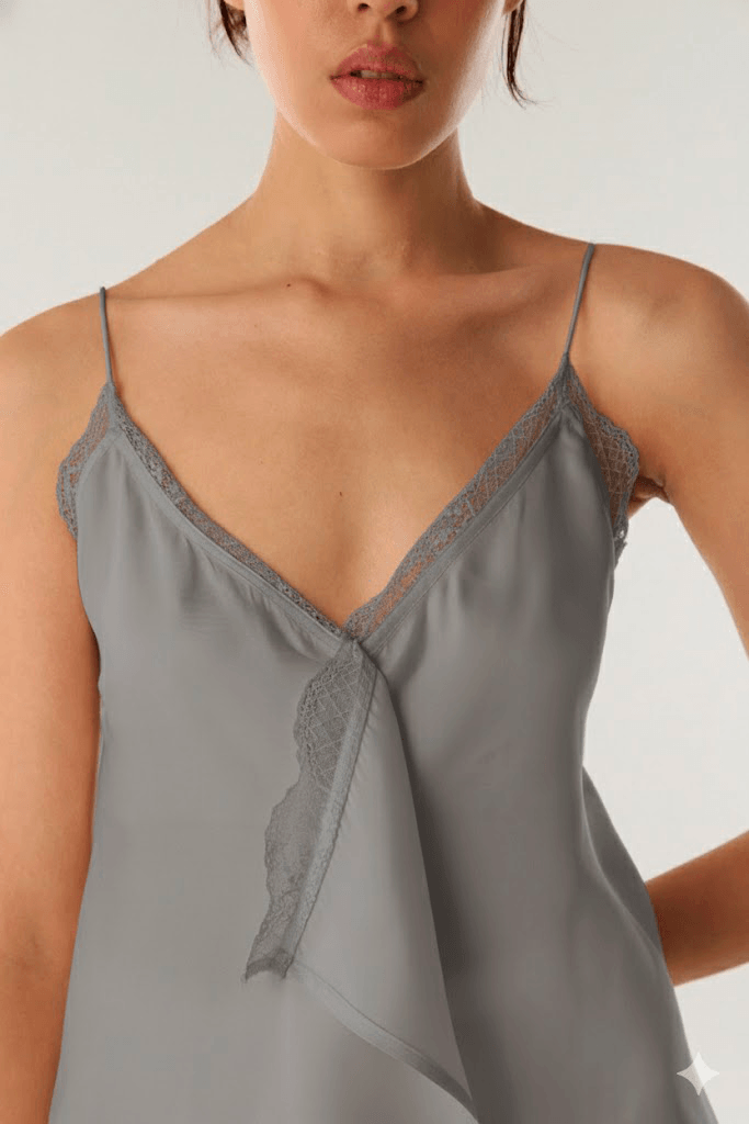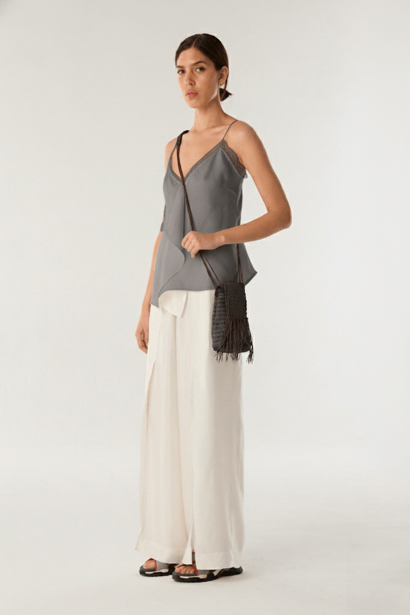 Top de tejido de cupro liviano con caida. Tiene calce recto con breteles spaguetti para atar regulables en espalda y detalle de encaje a en escote. Para un total look podes combinarlo con Pantalon Cupro Tajos o la Pollera Cupro Pañuelo. • Altura modelo:1,79 Talle: S • Composición: 60% Cupro 40% Viscosa - Encaje: 88% Poliamida 12% Elastano • Origen: Importado